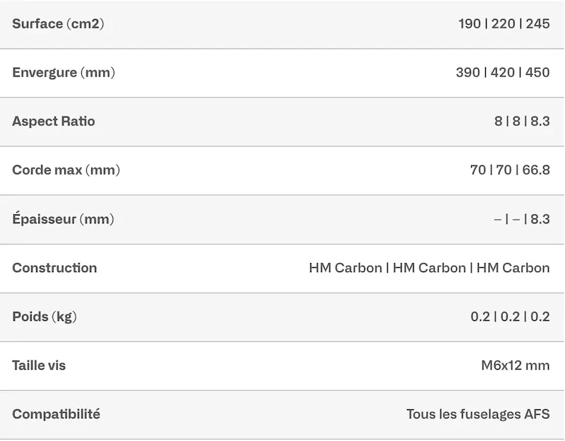 Ces stabilisateurs offrent un équilibre optimal entre stabilité, glisse et maniabilité. Performants et accessibles, leur profil favorise la glisse, tandis que leur conception légère et leur dièdre progressif garantissent une maniabilité intuitive.