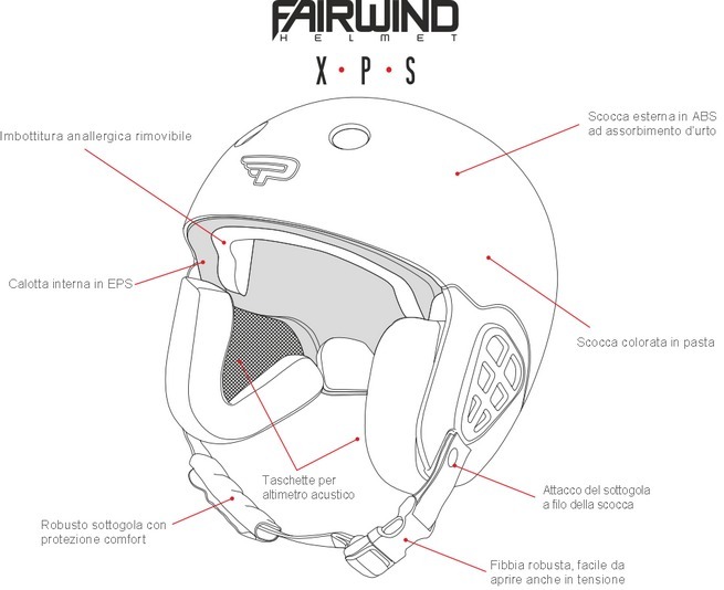 Le casque Parasport Fairwind XPS est le fruit de la coopération avec la Fédération Française de Parachutisme impliquant Parasport Italia depuis 2014 pour développer une norme spécifique pour les casques de parachutisme.